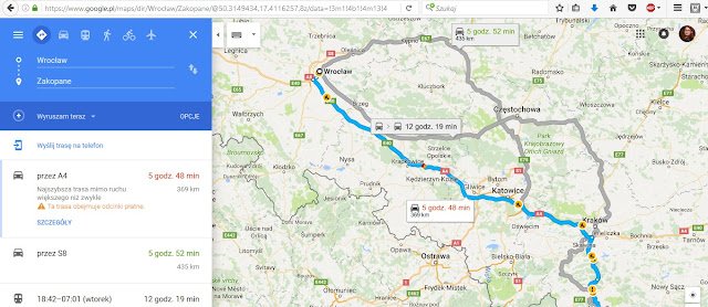 Jak to się mówi, oczywista oczywistość i nie ma co rozwodzić się na ten temat. Z google maps korzystam głównie przy planowaniu wycieczek samochodowych. Z uwagi na to, że nie jestem jeszcze kierowcą, wydaje mi się, że wszędzie jest blisko i weekendowy wypad w Tatry z Wrocławia to pestka. Dzięki mapom mogę łatwo zweryfikować czas przejazdu i najkrótszą drogę do celu. Używam ich także, gdy jestem umówiona w dzielnicy, w której nie bywam. Dzięki street view życie staje się prostsze.