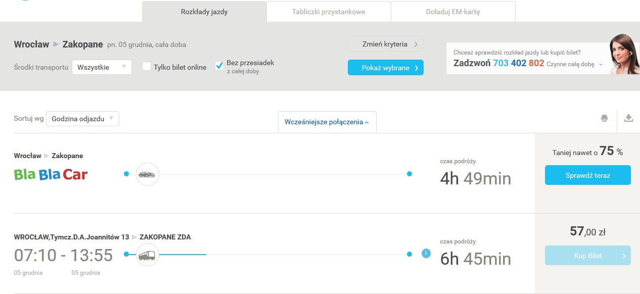 Niezwykle przydatny dla niezmotoryzowanych. Czasem zdarza mi się zatrzymać na dłużej w schronisku, czy też zrobić sobie postój w pięknym miejscu, które chcę uchwycić na zdjęciu i okazuje się, że planowany czas wycieczki nieco się przeciąga. Dzięki tej aplikacji można błyskawicznie sprawdzić najbliższy pociąg lub autobus razem z ewentualnymi przesiadkami. Czasami okazuje się też, że muszę zmienić plany, bowiem w miejsce, które sobie wybrałam po prostu nic nie jeździ lub jeździ tak rzadko, że po zejściu ze szlaku musiałabym wracać do domu 3 dni. 🙂