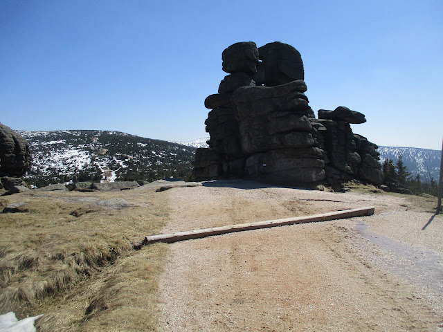 Ze szczytu kierujemy się dalej czerwonym szlakiem przez granitowy masyw skalny Trzy Świnki, aż do Śnieżnych Kotłów.