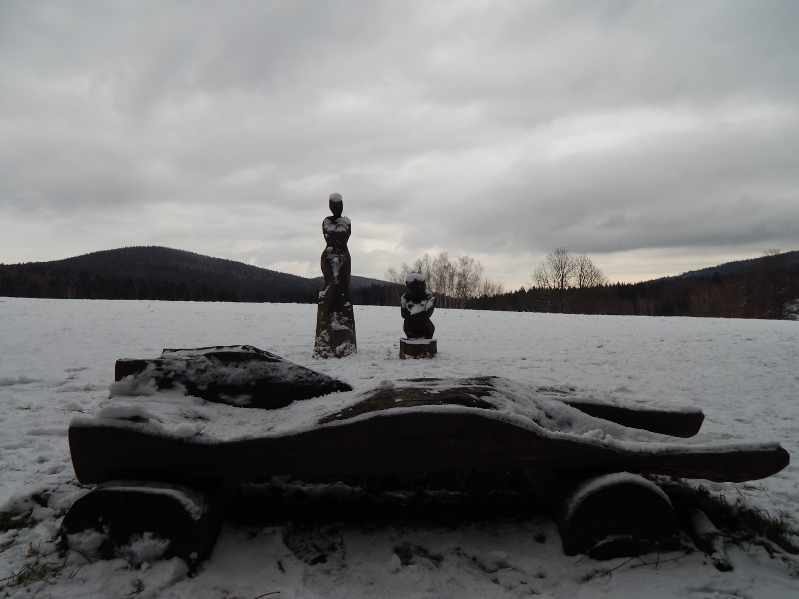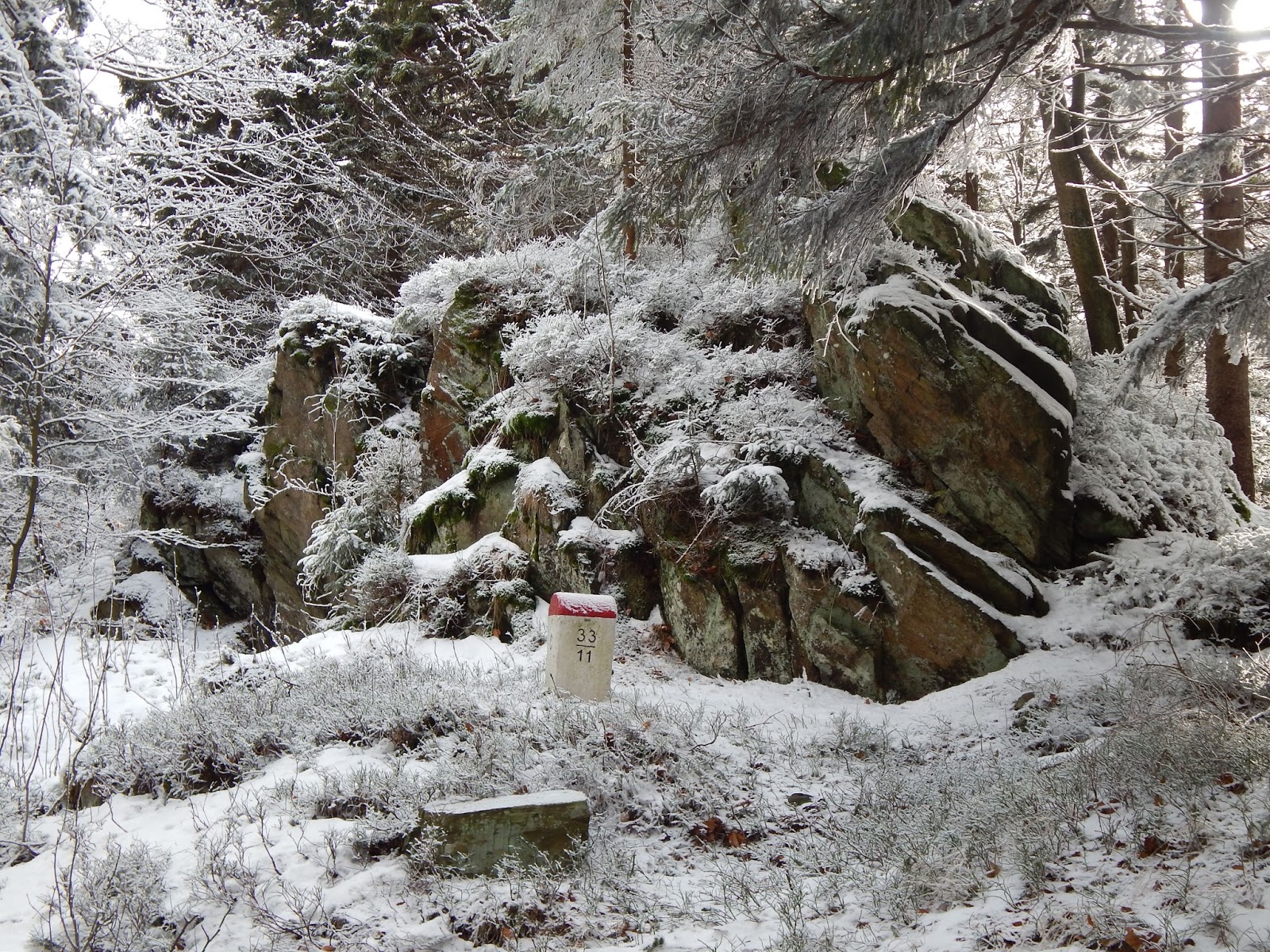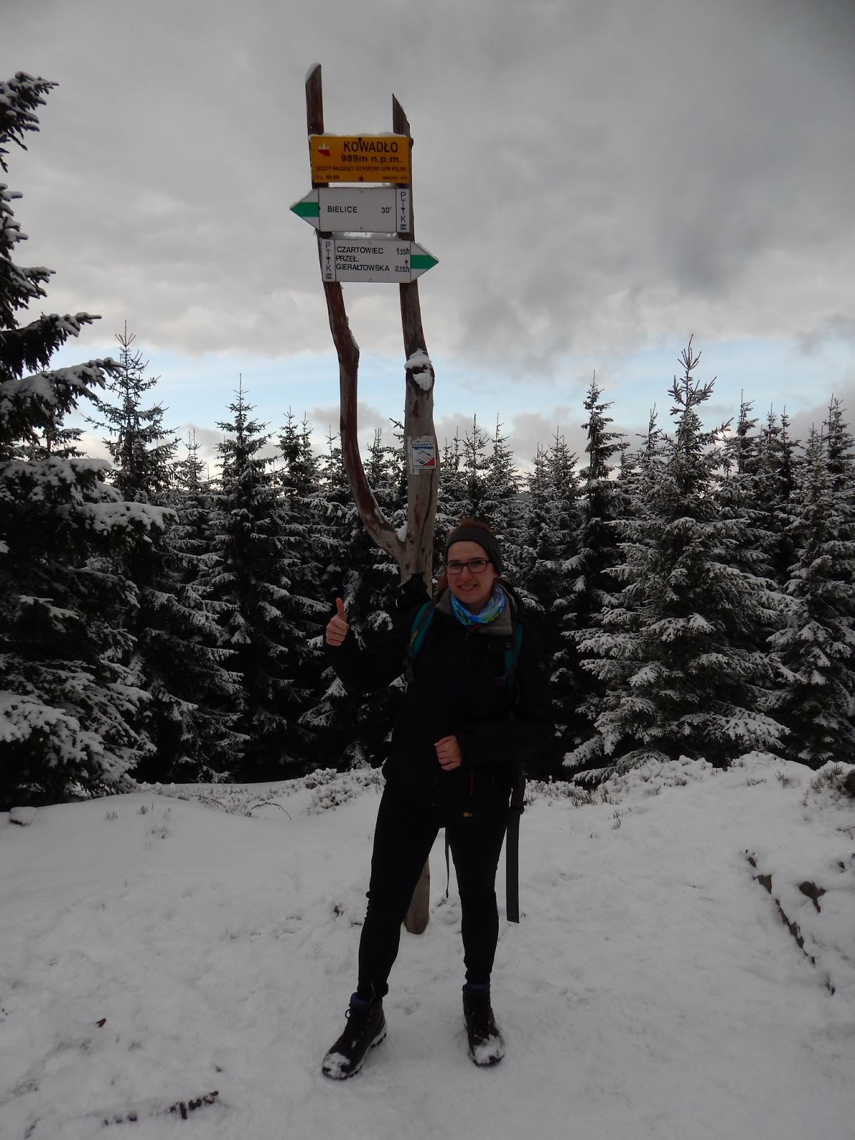Trasa, którą obrałyśmy wraz z Ewą i Gosią była mało standardowa, bowiem rozpoczynała się nie z Bielic, a z Nowego Gierałtowa. Po chwili studiowania mapy, wyruszyłyśmy czerwonym szlakiem, który chwilę później zgubiłyśmy w toku rozmów na tematy wszelakie. Po odnalezieniu zielonego koloru, udałyśmy się ku Špičákowi, pierwszemu tego dnia wzniesieniu. Chwila przerwy na wspólne zdjęcia i czas na gwóźdź programu, czyli Kowadło przez przełęcz Sedlo Peklo. Trasa jest fantastyczna, bowiem prowadzi nas granicą polsko-czeską, oferując przy tym baśniowe widoki.
