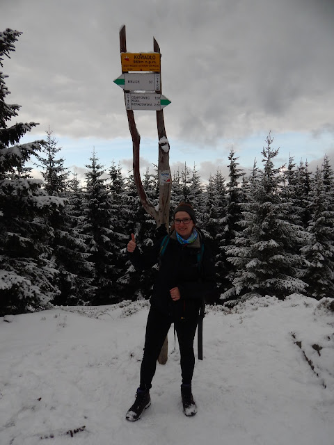 Po spokojnym, acz męczącym spacerze docieramy na szczyt, który jest moją 12. perełką w Koronie Gór Polski. Widoczność zaczyna się zmniejszać, a czas mocno goni, zatem po kilku pamiątkowych zdjęciach i krótkiej rozmowie z napotkanym turystą idziemy ku Czernicy, która jest ostatnim zaplanowanym na ten dzień szczytem.