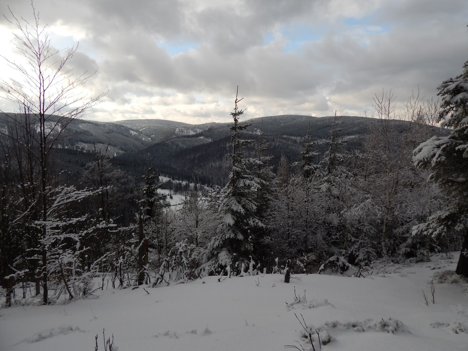 Sobotnia trasa obfitowała nie tylko w śnieg i klimat bliski Narni, ale także w pojawiające się raz po raz fantastyczne widoki. Tym z Was, którzy lubią się trochę zmachać polecam właśnie ten wariant, bo obejmuje on aż 1000 metrów przewyższeń w górę i tyleż samo w dół. Po długiej przerwie dał mi dokładnie to, czego potrzebowałam – sprawił, że ze zmęczenia nie byłabym w stanie przejść ani jednego dodatkowego kilometra. Oczywiście do czasu, bo już kolejnego ranka brałam udział w Biegu Karnawałowym na 10 km. Encyklopedia określa tego typu działania jako masochizm. 🙂
