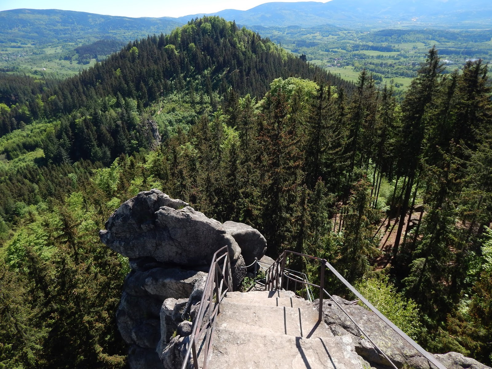 Najpierw weszłam na Sokolik, który musiałam odpuścić zimową porą. Coś pięknego. Tego widoku nie zepsuły mi nawet polityczne rozmowy półnagich turystów. Po chwili oddechu udałam się na dół, by odbić na czarny szlak i Krzyżną Górę. Pan, który robił mi zdjęcie, wyraził ubolewanie nad samotnymi wędrówkami, „bo nie ma kto człowiekowi zrobić fotki”. Może to dlatego w zeszłym tygodniu kupiłam selfie-sticka?